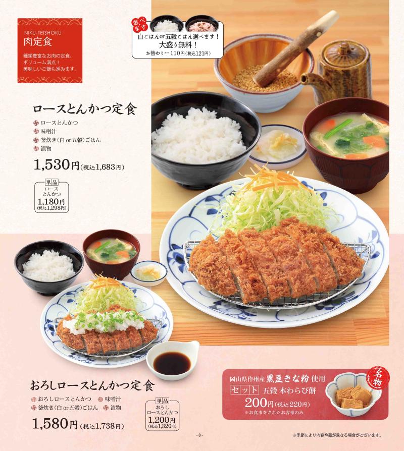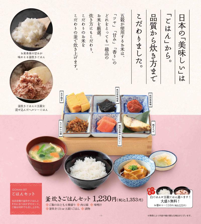 ※こちらのメニューは五穀 イオンモール大日店のメニューです。
