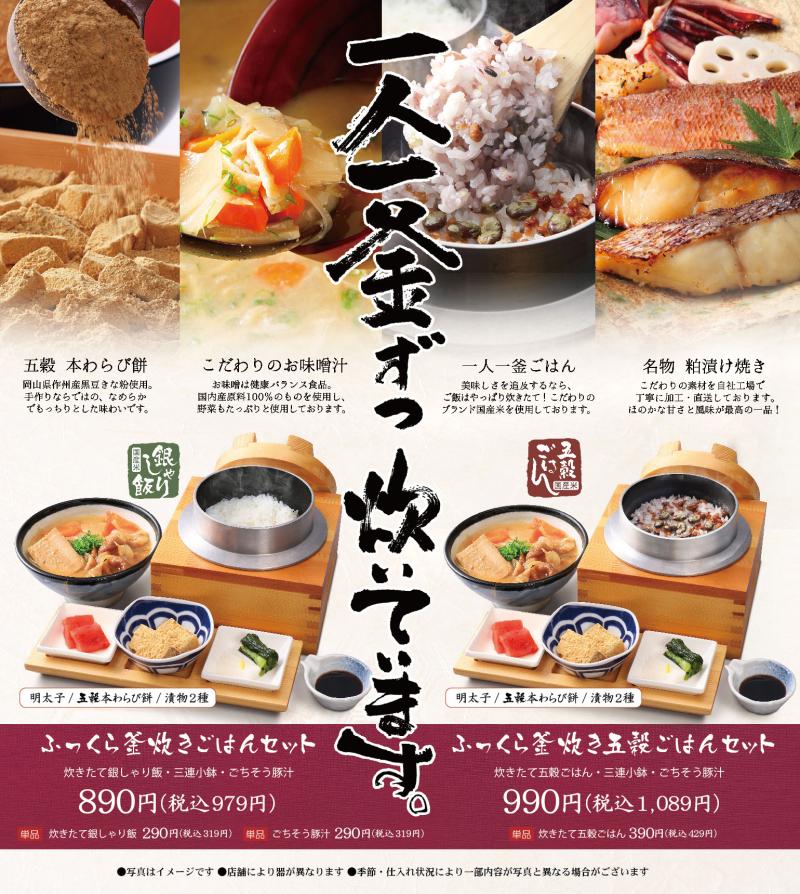 一人一釜五穀 ゆめが丘ソラトス店 神奈川県横浜市泉区下飯田字大原1584-2 ゆめが丘ソラトス1F 11:00~21:00 L.O. 20:30 定休日:施設の営業日に準ずる TEL. 045719-9111