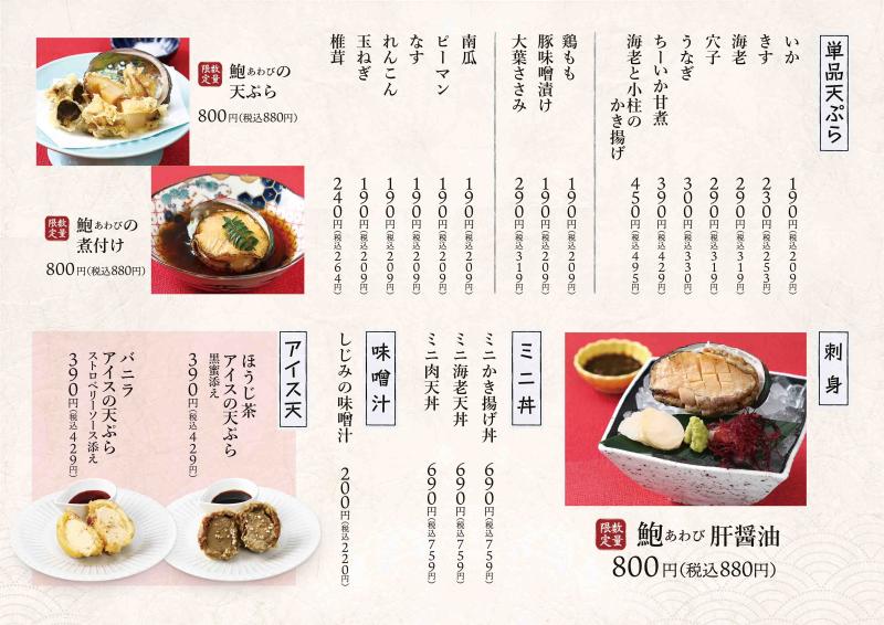 ※こちらのメニューはてんぷら 一代 イオンモール津南店のメニューです。