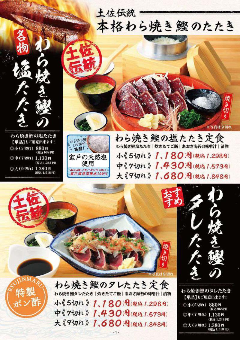 龍神丸 イオンモール堺北花田店 大阪府堺市北区東浅香山町4-1-12 イオンモール堺北花田 4F 11:00~22:00 L.O. 21:00 定休日:施設の営業日に準ずる TEL. 072-242-3881